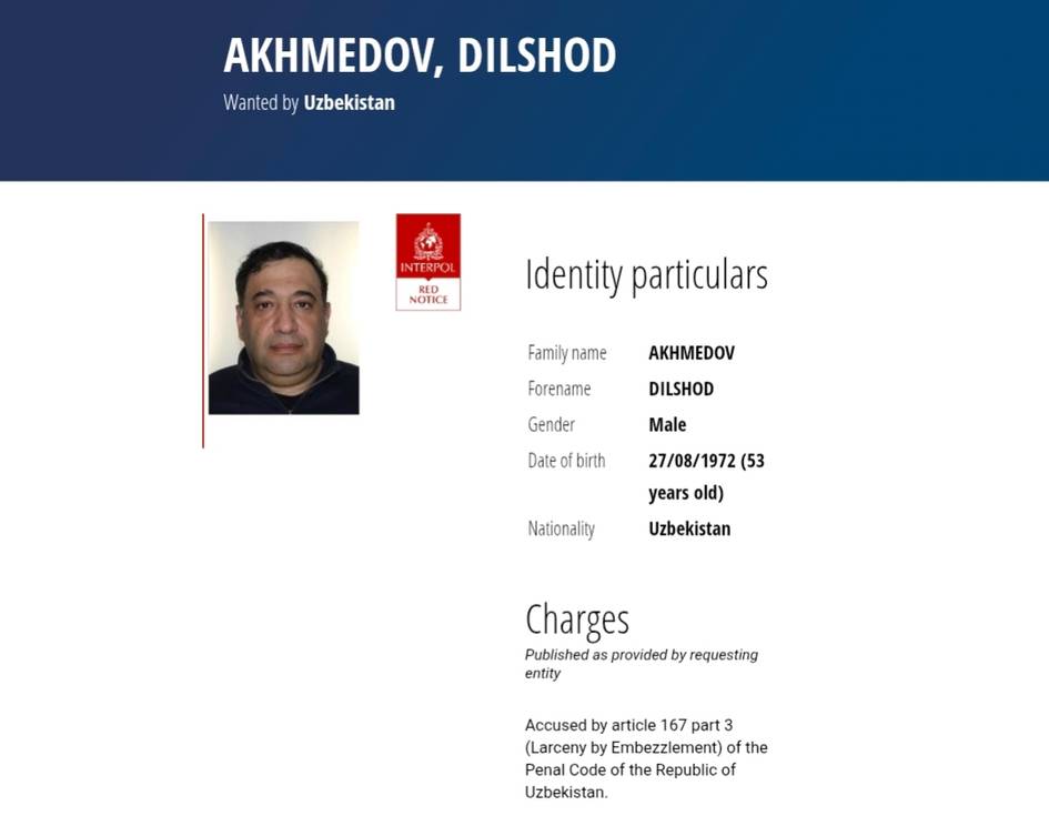 Бывшего председателя правления АО «Узбекский металлургический комбинат» Дилшода Ахмедова объявили в международный розыск.
