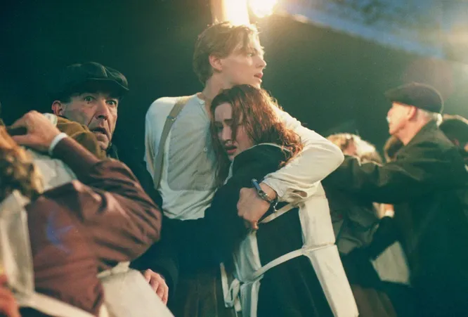 1912 йилда чўккан ҳақиқий “Титаник” кемаси фожиаси асосида яратилган фильм прокатда 2 миллиард доллардан кўпроқ даромад олди. Сюжетга кўра, бадавлат оиладан чиққан Роуз мажбуран бой йигит Кел Ҳокли билан унаштирилган бўлса-да, кемада тасодифан камбағал рассом йигит Жек билан учрашади. Икки ёш бир-бирини севиб қолади, лекин уларнинг муҳаббати ижтимоий табақалар орасидаги фарқ сабаб тўсиқларга дуч келади. Кема океанда муз тоғига урилиб, чўка бошлайди. Жек ва Роуз бирга қутулиш йўлини излайди, лекин охир-оқибат йигит муздек сувда ҳалок бўлади, қиз эса омон қолади.